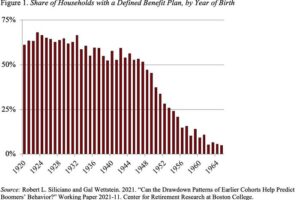 Earlier cohorts had defined-benefit plans and therefore less need to tap financial assets