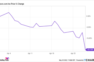 Amazon (NASDAQ: AMZN) stock sank roughly 23.8% in April, according to data from S&P Global Market Intelligence. The tech giant's share price moved amid...