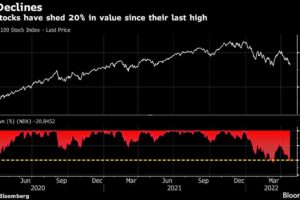 (Bloomberg) -- Covid in China, war in Europe and changing perceptions about the invincibility of Big Tech companies are behind a plunge in the Nasdaq 100 Index...