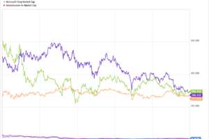 The largest stocks in today's market have come a long way from their modest market caps at the turn of the millennium. The big names of old are fading fast...