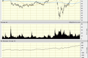 In the daily bar chart of SQ, below, we can see the steady uptrend from the March low. The On-Balance-Volume (OBV) line has been rising the past 12 months but...