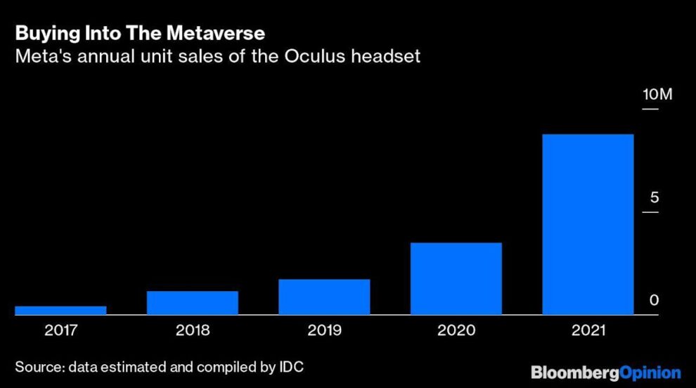 Virtual reality headsets have been around for decades, but have recently exploded in popularity, with customers spending over $1 billion in Meta’s Oculus Quest store, in part driven by the hype of the so-called metaverse, a virtual universe that blends various aspects of digital technologies such as gaming, VR and social media. Facebook’s parent company spent $10 billion developing metaverse products last year, and JPMorgan estimates the market will someday reach sales of $1 trillion a year.