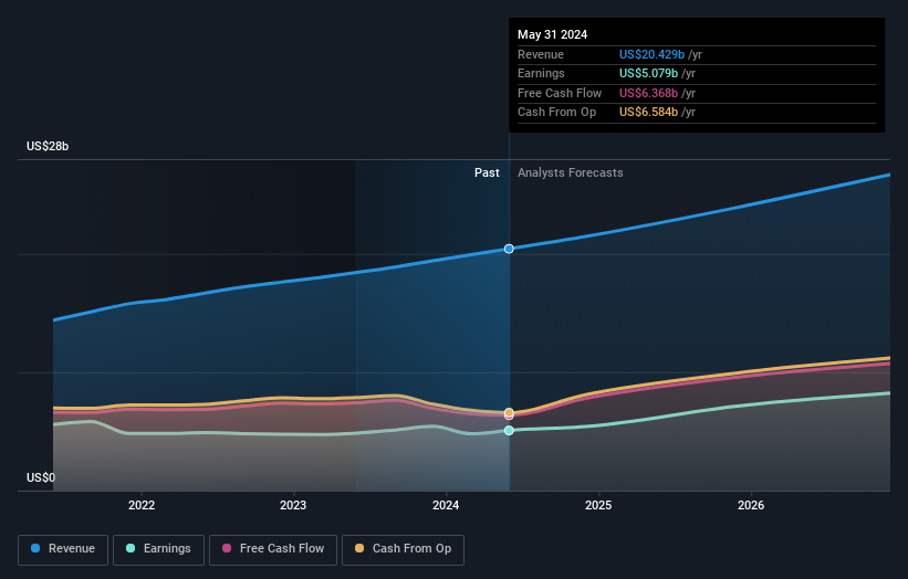 Oracle’s commitment to innovation is evident with R&D expenses reaching $7.2 billion in 2024, reflecting a robust strategy towards enhancing its cloud and AI capabilities. Revenue growth is projected at 9.5% annually, bolstered by strategic client partnerships like Alfred Health and Syniverse. Oracle’s earnings are forecasted to grow at 15.9% per year, outpacing the US market’s average of 15.1%. Recent enhancements in Oracle Fusion Cloud SCM and new user experience features demonstrate their focus on improving productivity and customer satisfaction across various industries.