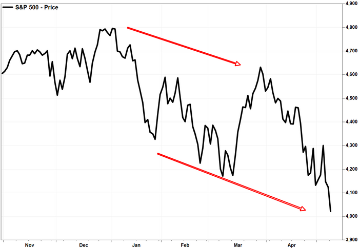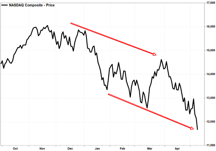 The Nasdaq Composite Index COMP had also already confirmed a downtrend, on April 26, when it closed below its March 14 low.