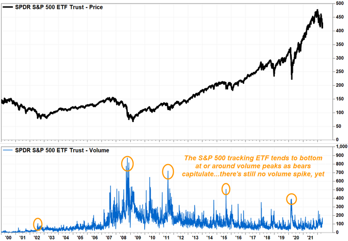 “The volume over the past two weeks is unimpressive relative to both the volatility and weakness,” wrote Mike O’Rourke, chief market strategist at JonesTrading. “This equity market appears very far from any type of capitulatory mindset.”