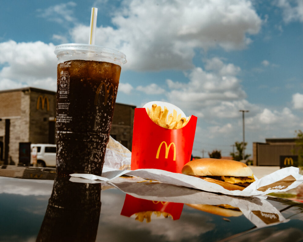 A McDonald’s cheeseburger, fries and soda arranged in Celina, Texas, Sept. 2, 2025.