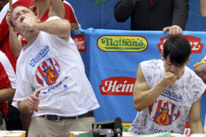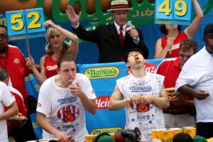 After organizers for Nathan’s Famous Fourth of July hot dog-eating contest said Joey Chestnut wouldn’t compete this year because of a deal with a rival brand...