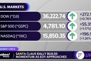 U.S. stock benchmarks rise Monday afternoon, with the Dow topping 36,000 and technology and energy shares helping to establish an intraday record for the...