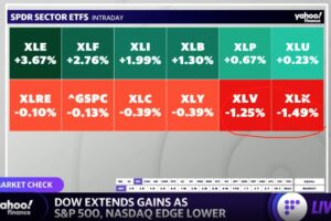 The Dow is extending gains while the Nasdaq and S&P 500 is edging lower in intraday trading. Yahoo Finance's Jared Blikre breaks down the latest market...