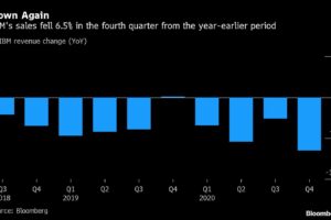(Bloomberg) -- International Business Machines Corp. shares fell the most in 10 months after the company reported a greater sales decline in the fourth quarter...