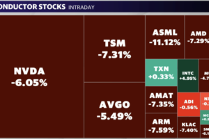 Megacap tech names such as Nvidia and Advanced Micro Devices are falling as investors rotate to small-cap stocks, ASML tumbles on concerns about more curbs on...